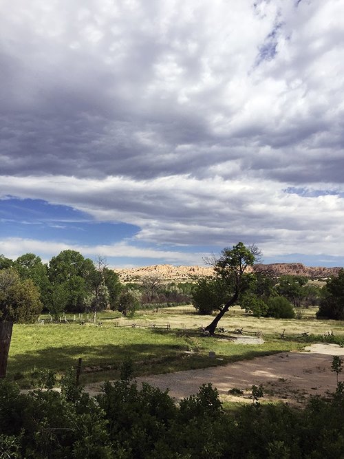 The cliffs of Pojoaque Pass in the distance. Courtesy: RanchoJacona.com